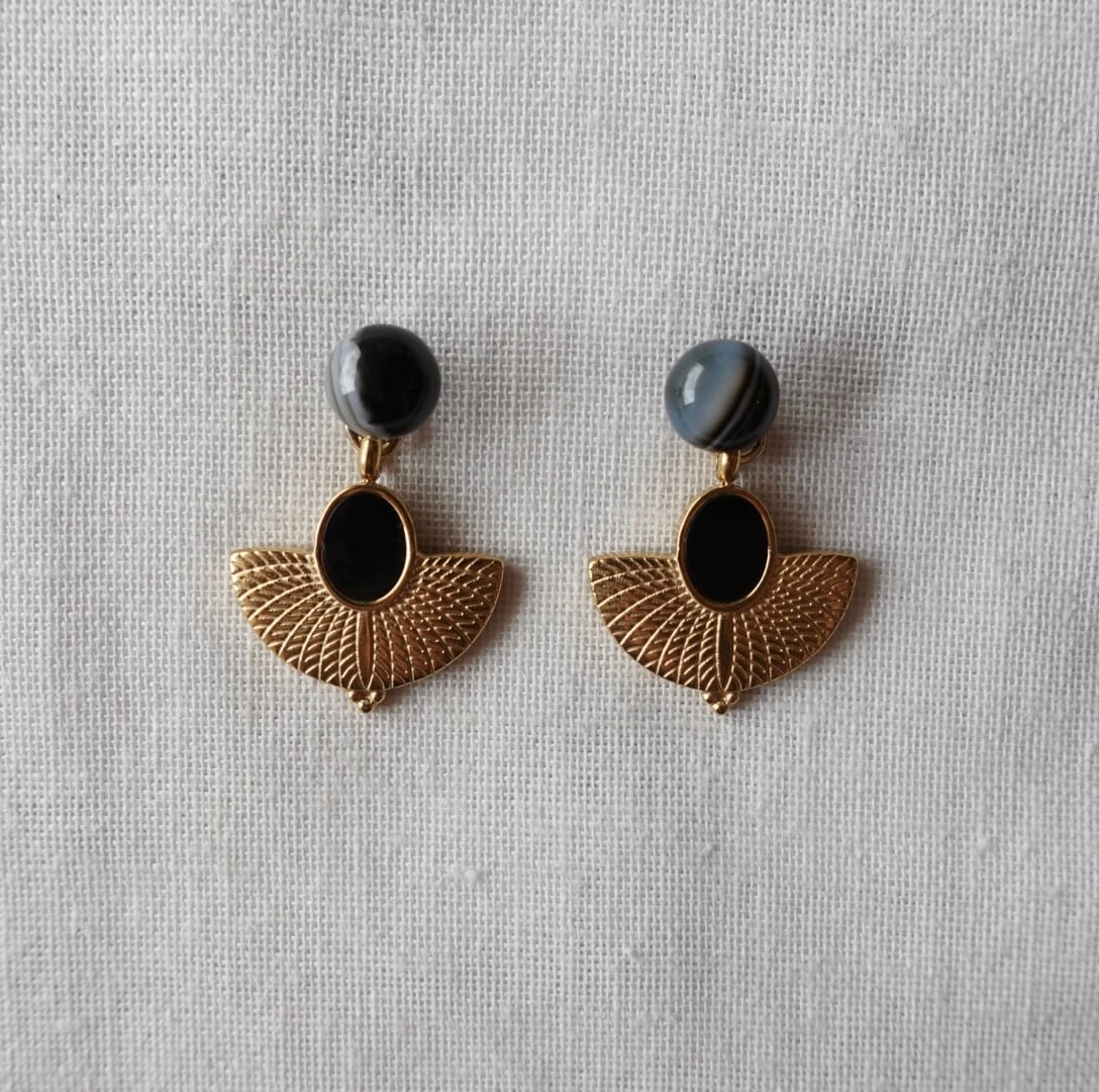素材 オニキス チタンピアス 長さ約2.5センチ 重さ片耳約6g