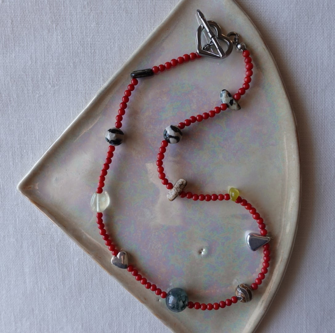 素材:赤染めサンゴ ダルメシアンジャスパー ヘマタイト イエロージェイド etc.