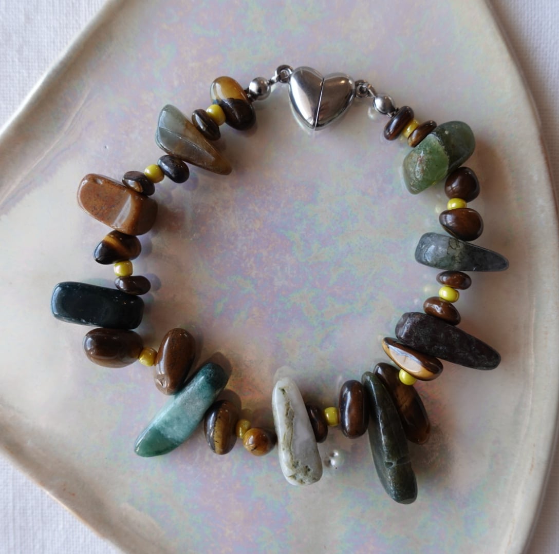 素材:タイガーアイ etc… 金具:ステンレスマグネット 長さ約:18センチ 重さ約:25g