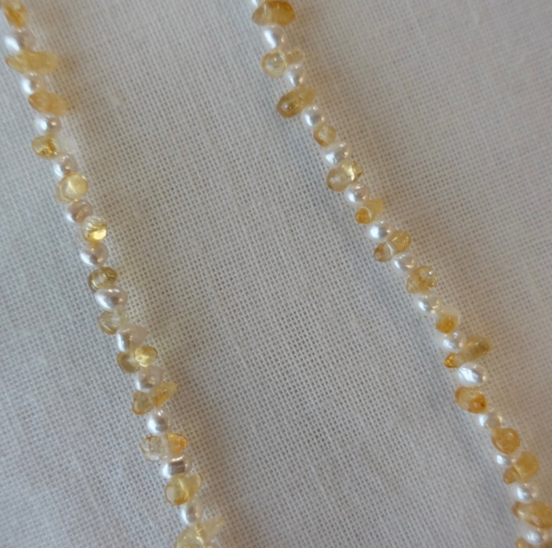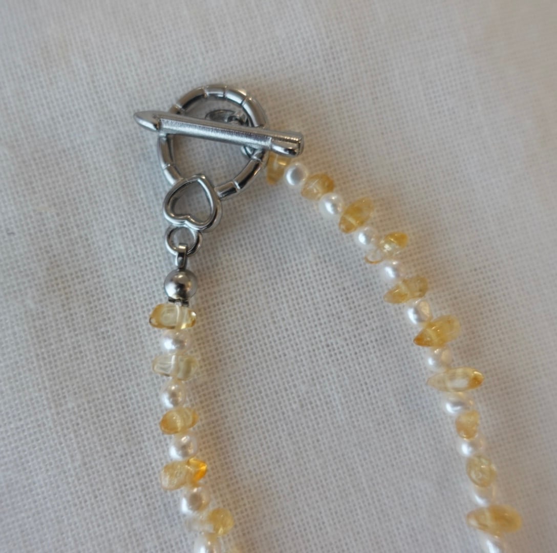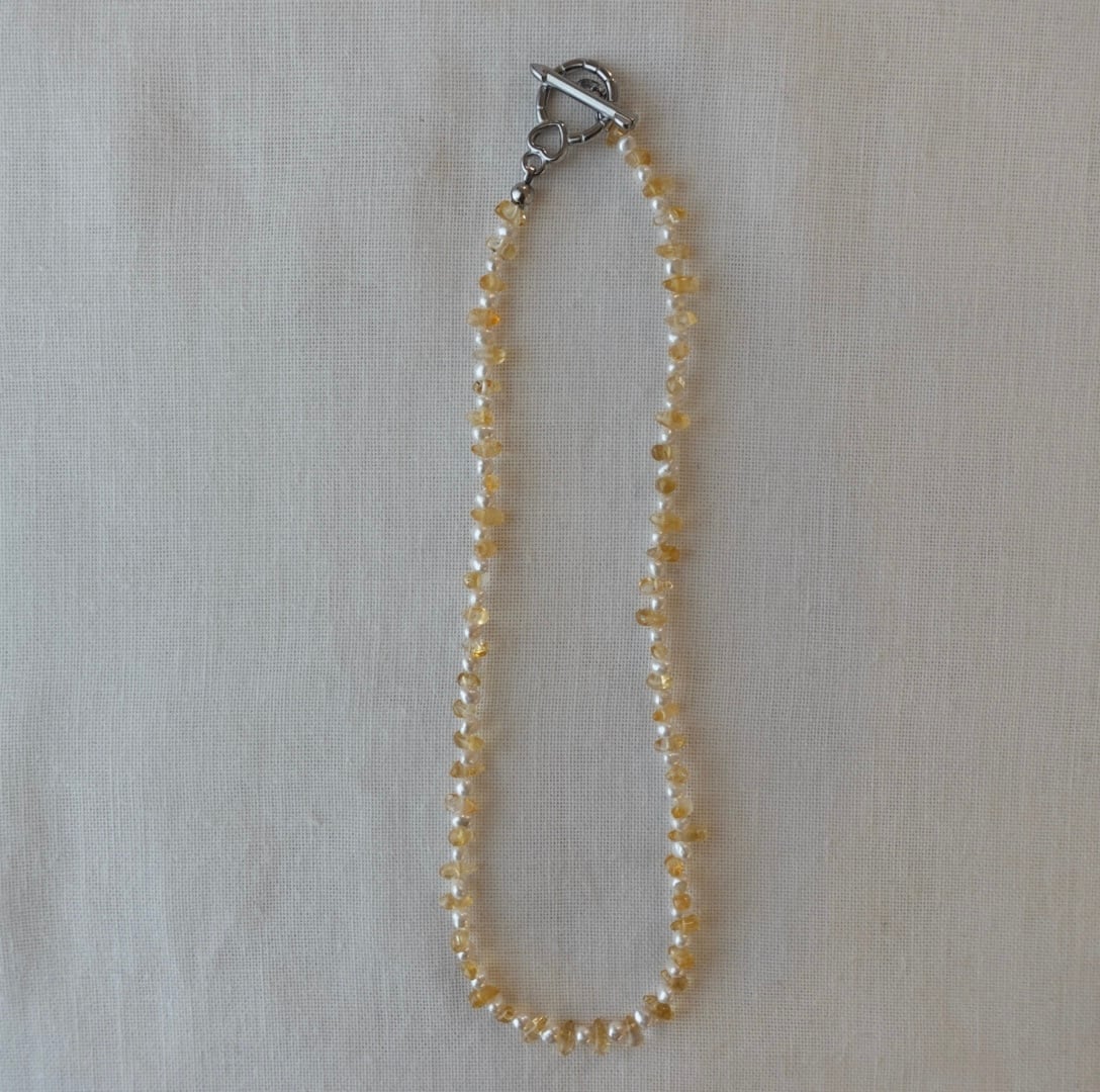 素材:淡水パール シトリン 金具:ステンレスマンテル 長さ:約36cm 重さ:約9g