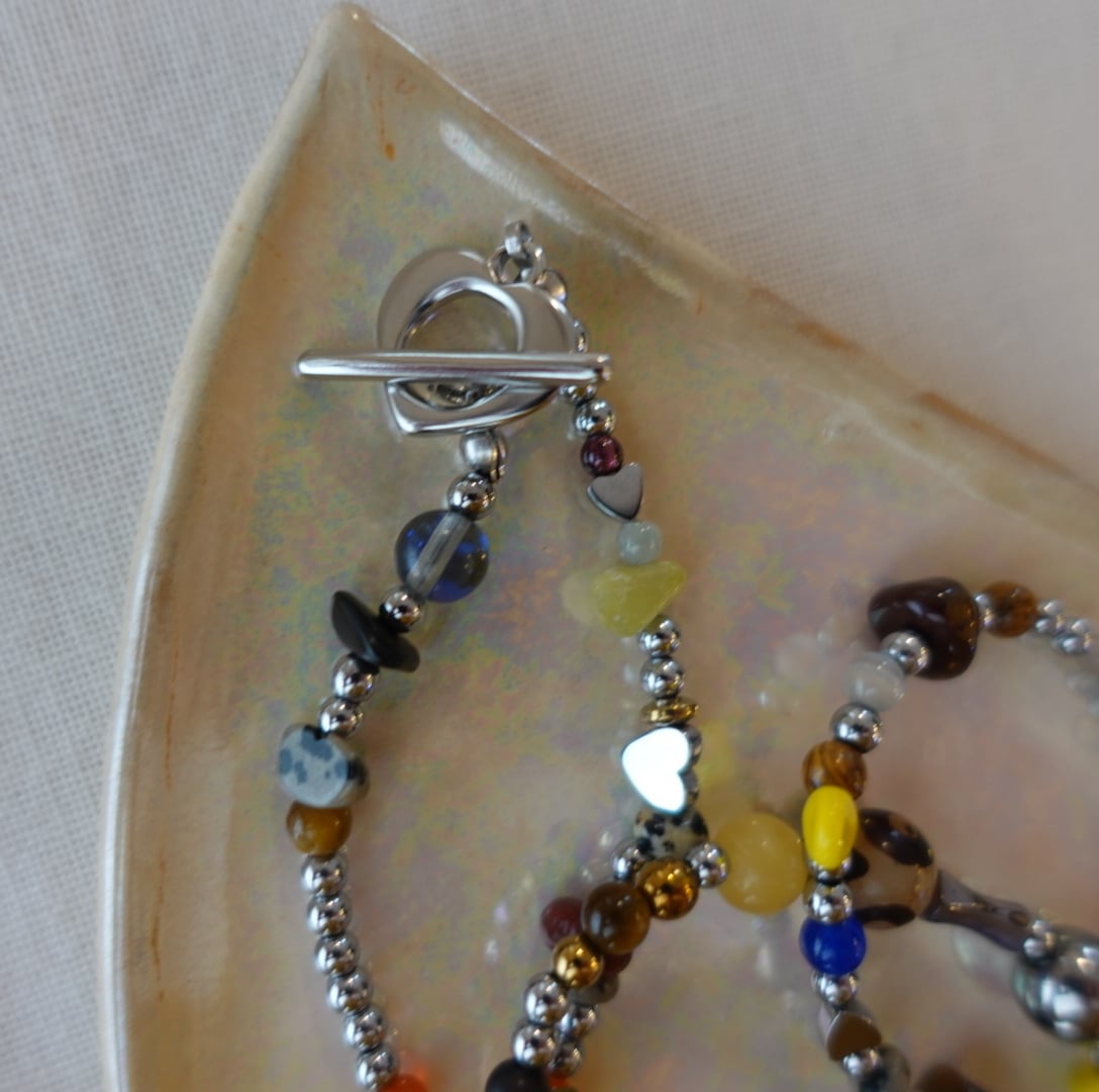 素材:ヘマタイト ジェイド スノーフレークオブシリアン 樹脂ビーズ シェル ユナカイトetc.