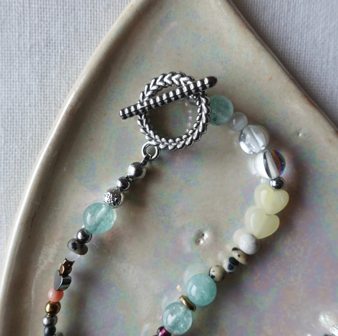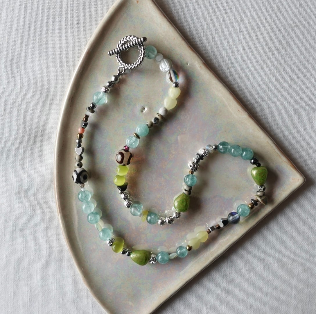 素材:グリーンジェイド ヘマタイト プラスチックパーツ キャッツアイ アイアゲート etc.