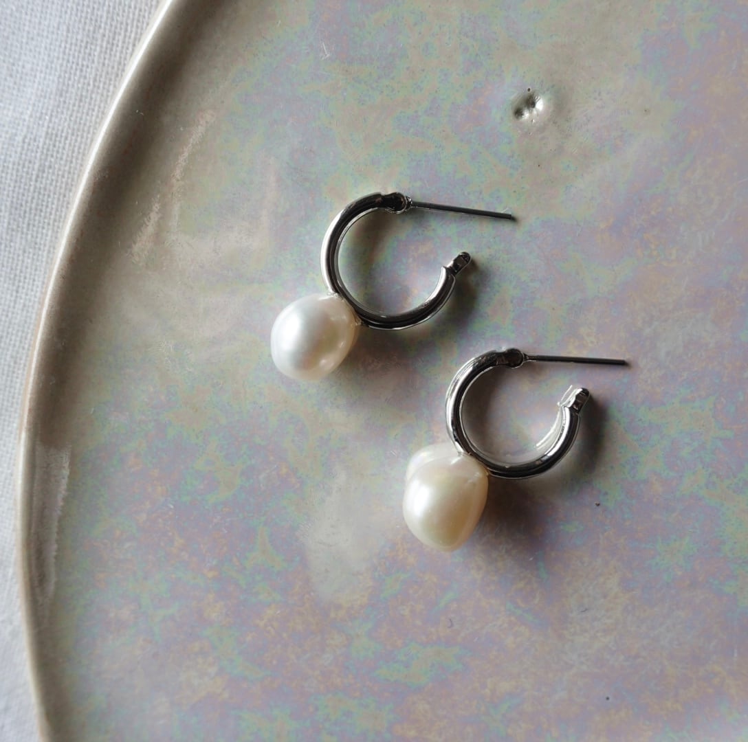 長さ約2センチ 重さ約2g 素材:淡水パール チタン