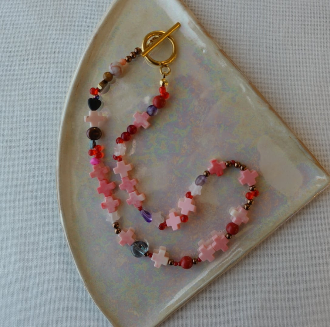素材:ヘマタイト アゲート 水晶 樹脂ビーズ アメジスト etc.